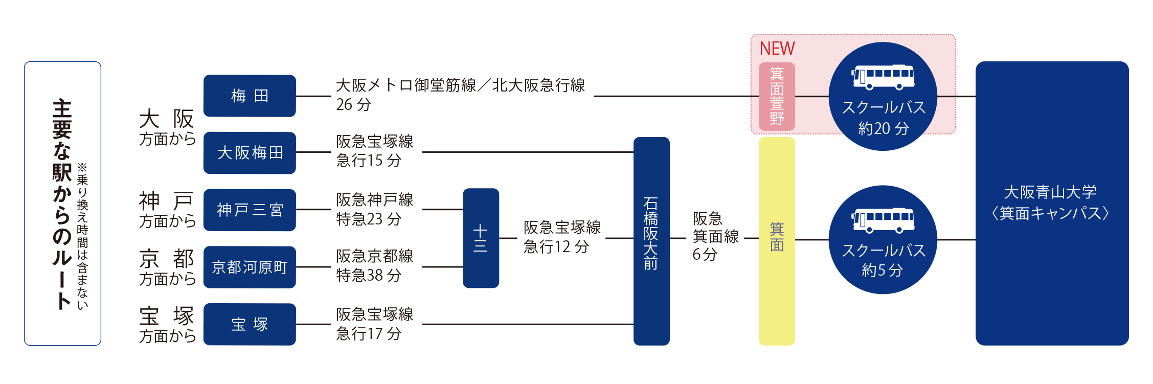 ![]() | 「のるーと箕面」のミーティングポイント(35番)がご利用いただけます。 35番のミーティングポイントが、本学入口の坂を上がって構内の中庭スロープ前に設定されております。 ご利用方法など詳細につきましては下記のボタンよりご確認ください。 ※ご利用は有料となります。 (実証期間:令和6年12月19日~令和8年3月31日) ▷のるーと箕面に関するお問合せ 箕面市役所 地域創造部 交通政策室: 072-724-6746 |