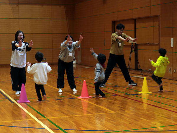体育館エリアには、本学の教員によるお子さま対象のかけっこ教室や、ゲームコーナー、各種スポーツの体験コーナー等が設けられ、多くの家族連れで賑わいました。