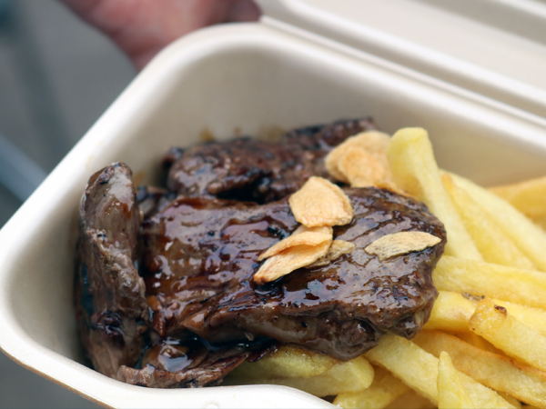 バラエティに富んだ屋台の食事を、多くの学生が利用しました。