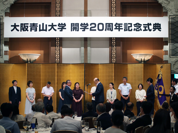 8 月 26 日、大阪青山大学開学 20 周年を記念して、帝国ホテル大阪にて「大学開学 20 周年記念式典」を実施しました。
