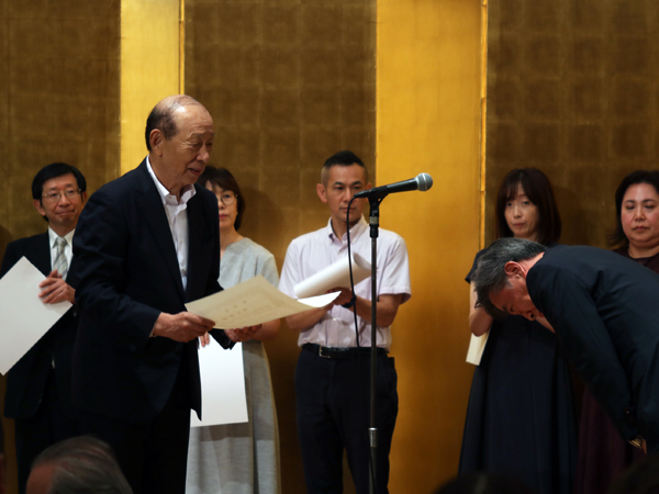 同じく永年にわたり本学園を支えてきた前理事長 眞下 顧問より、一人ひとりに表彰状が手渡されました。