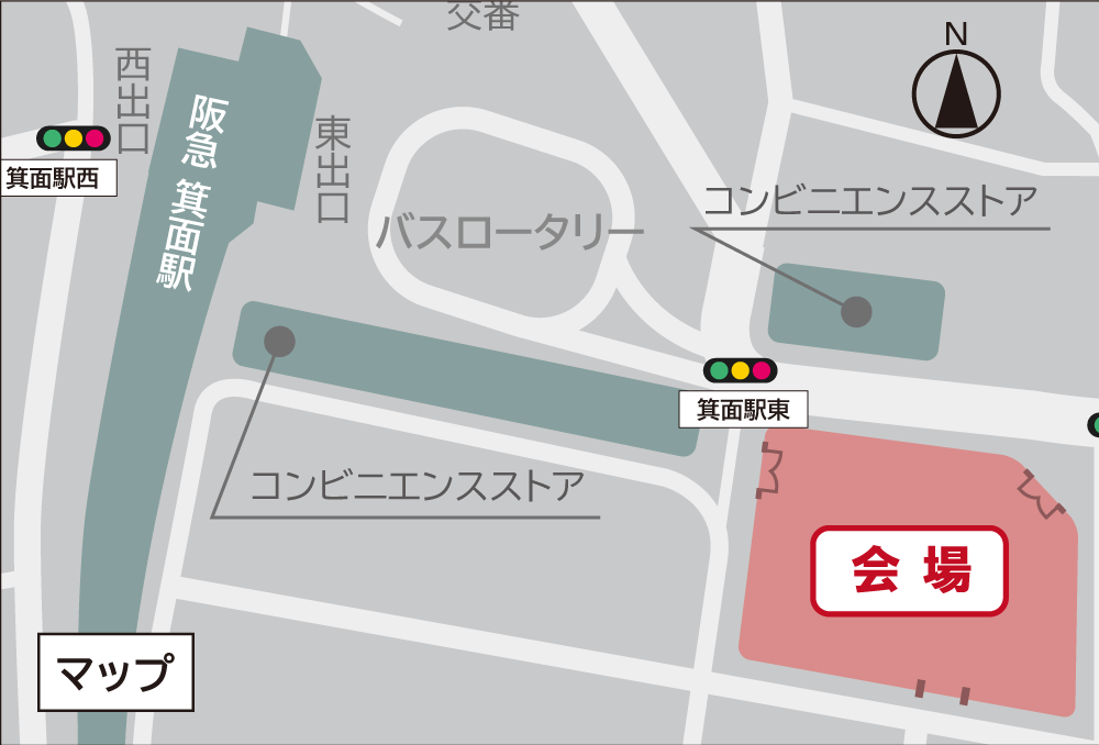 | 箕面文化・交流センター みのおサンプラザ1 号館ビル内8階大会議室 〒562-0001 大阪府箕面市箕面6 丁目3-1 ▼電車でお越しの場合 ー 阪急箕面駅東出口から徒歩1分 ▼お車でお越しの場合 ー 箕面文化・交流センター南側の「箕面駅前第1 駐車場」等をご利用ください。(有料) | ![]() |