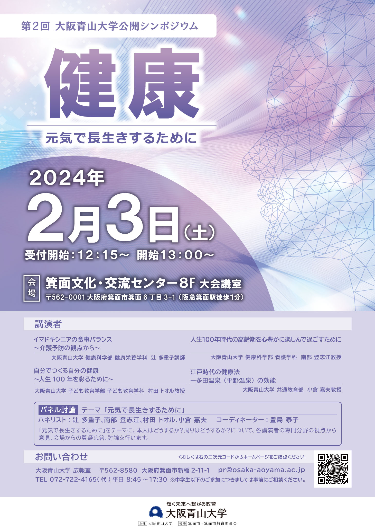 | 備考 | 主催:大阪青山大学 後援:箕面市 ・ 箕面市教育委員会 |