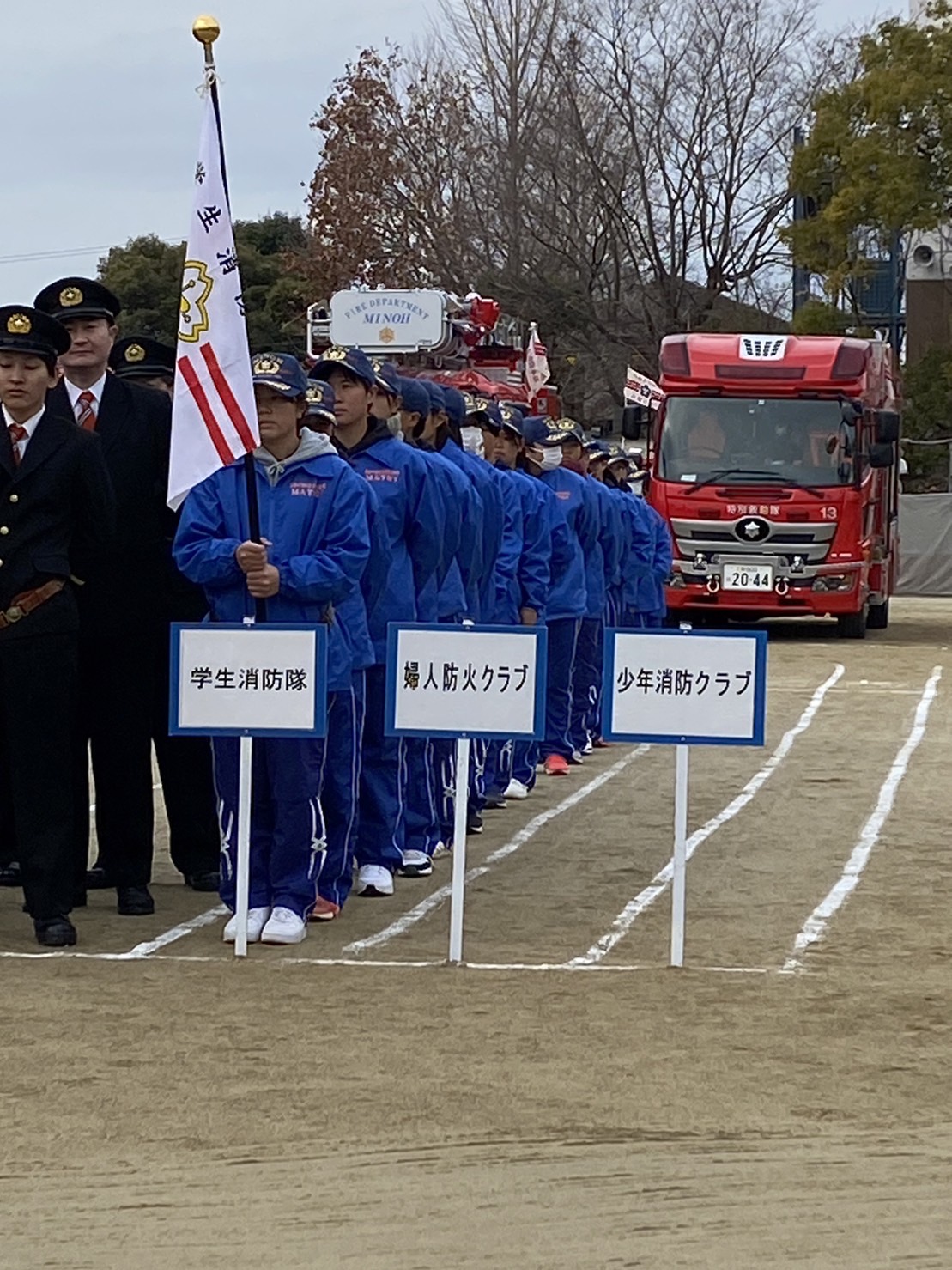 令和6年最初の活動として、1月3日に箕面市立萱野東小学校において挙行された箕面消防出初式に参加しました。