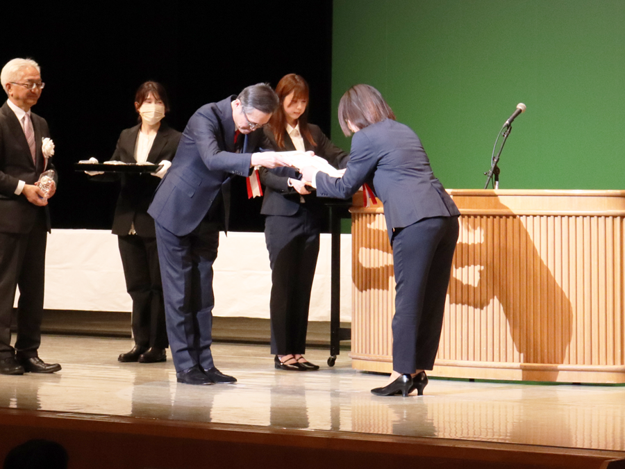 第一部では 上島 一彦箕面市長のご挨拶、第二部では箕面市特命大使のプロBMXライダー兼パフォーマーの志賀勇也様のBMX披露、そして第三部に青少年育成推進功績功労者表彰がとり行われ、本学女子ソフトボール部は2024年8月に開催された[第58回全日本女子ソフトボール選手権大会』に出場し、その功績を認められ受賞することとなりました。