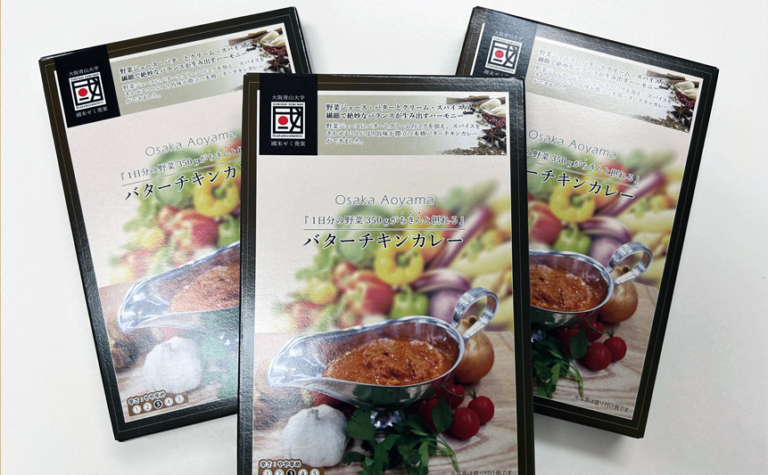 健康栄養学科で管理栄養士をめざす学生たちが、忙しく不規則な食生活の中でもしっかりと野菜を摂れるように、というコンセプトのもと開発したオリジナル商品「1 日分の野菜 350g がちきんと摂れるバターチキンカレー」が今週末、地元最大のお祭りイベント「箕面まつり」に登場します。