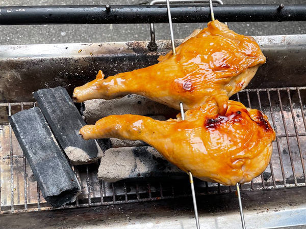 今年の商品は「豪快‼ OAU ジャンボ炭火焼チキンレッグ!」。肉厚ジューシーな鶏もも肉に、特製照り焼きソースをたっぷりと塗って炭火でこんがりと焼き上げます。