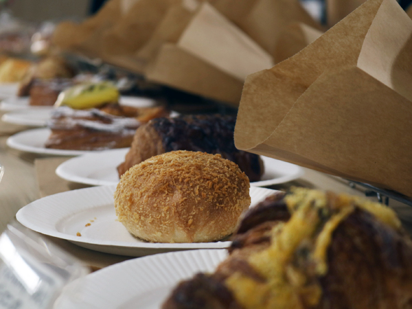 選べるパン 1 個とドリンクが無料で配布され、今回もクロワッサン、スコーン、カレーパン、ベーコンエピ、ホットドッグ、デニッシュなど色々な種類のパンが並びました。