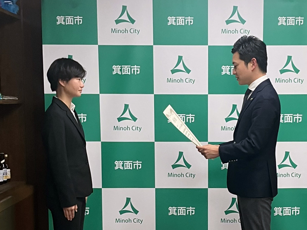 12 月 17 日(水)、箕面市役所にて表彰式が行われ、表彰状の授与が行われました。