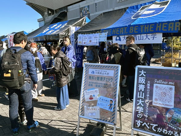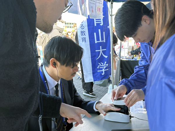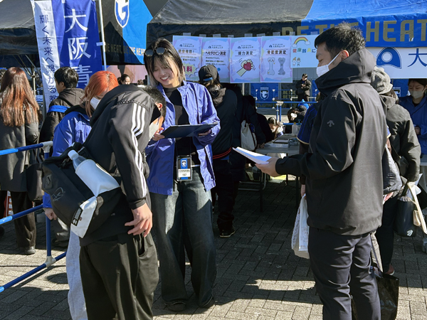大阪青山大学の健康栄養学科は、Well-being パーク内に特設ブースを出展し、来場の皆さんを対象に「握力」「ヘモグロビン測定」「骨密度チェック」を通して健康状態をチェックする体験イベントを実施しました。