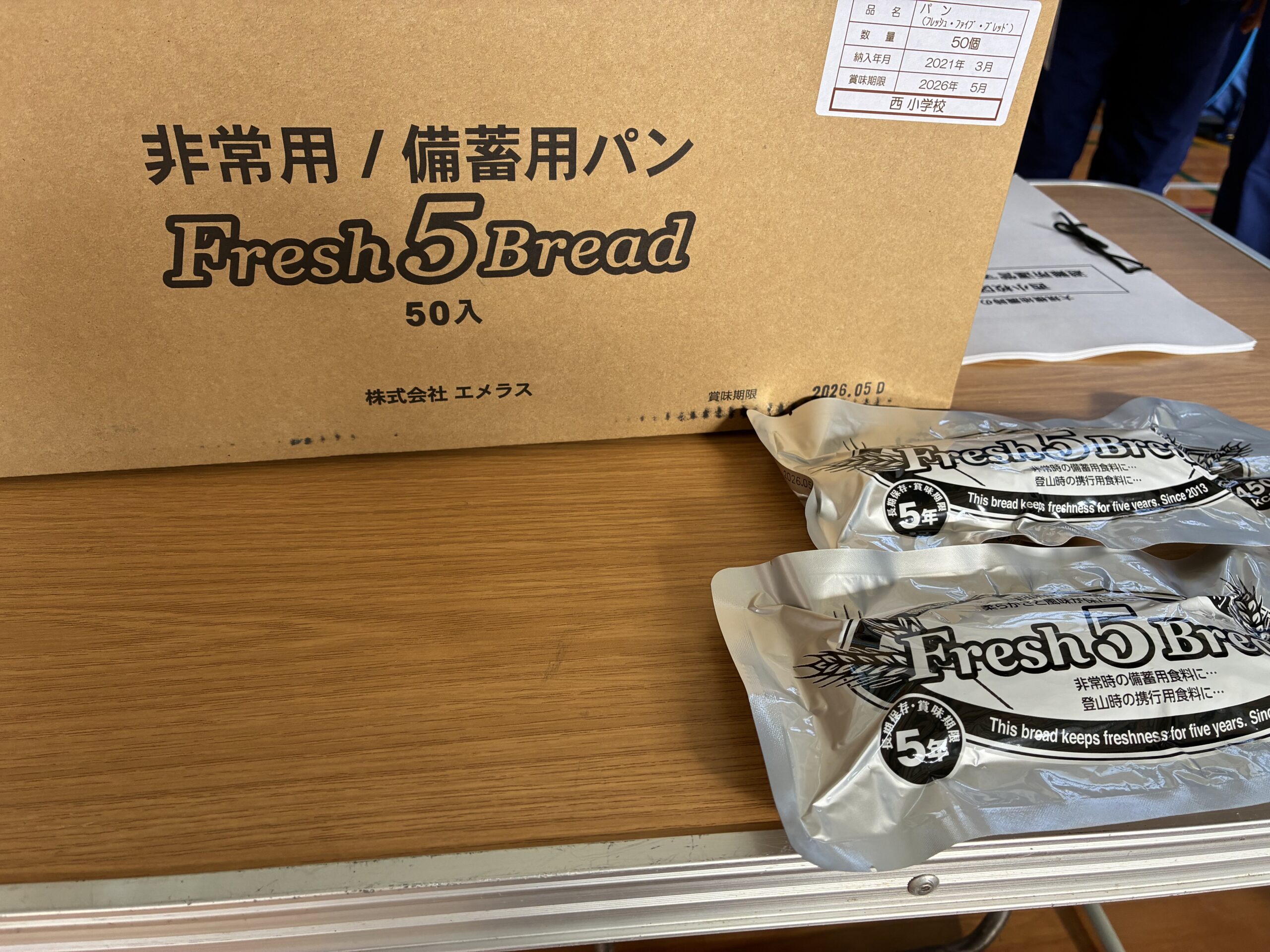 体育館に設置された「避難所開設訓練」の場では、テント設営の状況確認と避難者に配布される非常食についての説明を受けました。