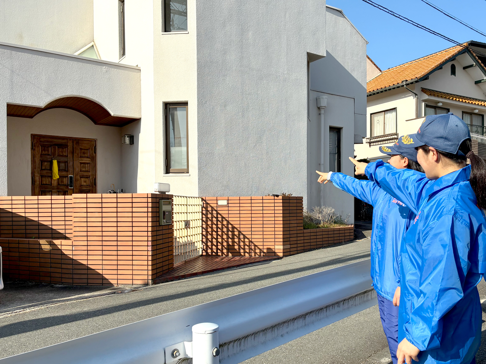 ![]() 玄関に吊るされた黄色いハンカチを確認 |