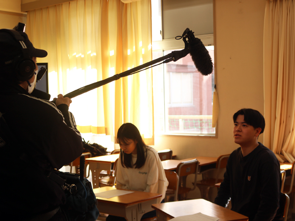TV 局やラジオ局からの取材もあり、学生らがプロジェクトのことやこの日の感想などをコメントしました。