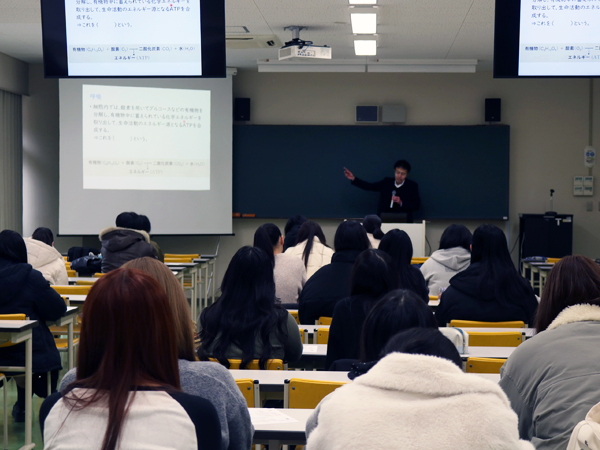 中学・高校までの学びから、大学で求められる学びへとステップアップさせるために必要なスキルや考え方について、わかりやすく解説。受講生に質問が飛んだり、受講生が検証実験に参加したりと双方向型の講義が展開されました。