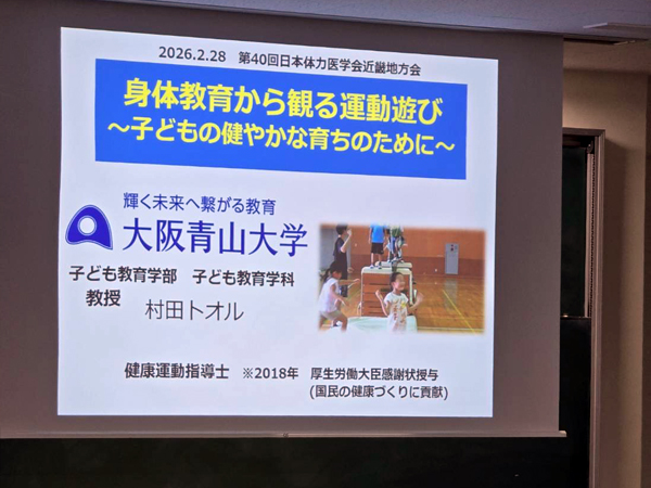 2 月 28 日、本学 子ども教育学部の村田 トオル教授が、第 40 回日本体力医学会近畿地方会(神戸大学)のシンポジウムにて発表を行いました。