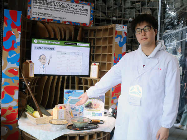 食の多様性に対応するプラントベースフード「植物性原材料のみを使用したうどんだし」の開発をテーマに、大阪・関西万博に参加しました。