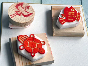 版画の特性の一つに「複数性」があります。絵の具やペンなどで画面に直接描く絵とは違って、版をつくれば何枚も同じものを描く(刷る)ことができるという特長です。今回は、手軽な版画体験として、お正月をテーマに「消しゴムはんこ」のつくり方を学びます。出来たはんこを色紙や年賀状に捺して、オリジナルな新年の準備をしませんか。参加者や私の作品をみんなでシェアすると、一人ではできないバラエティ豊かなものが出来上がり、きっと「複数性」のよさも感じられると思います。