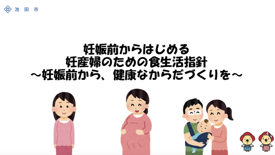 健康な体づくりは食事から。母親の健康と子どもの健やかな発育のためには、妊娠期はもちろん、妊娠前から食生活に気を配ることが大切です。管理栄養士をめざす学生が、各種栄養素や細菌予防などをテーマに気をつけたい点をアドバイスする動画です。