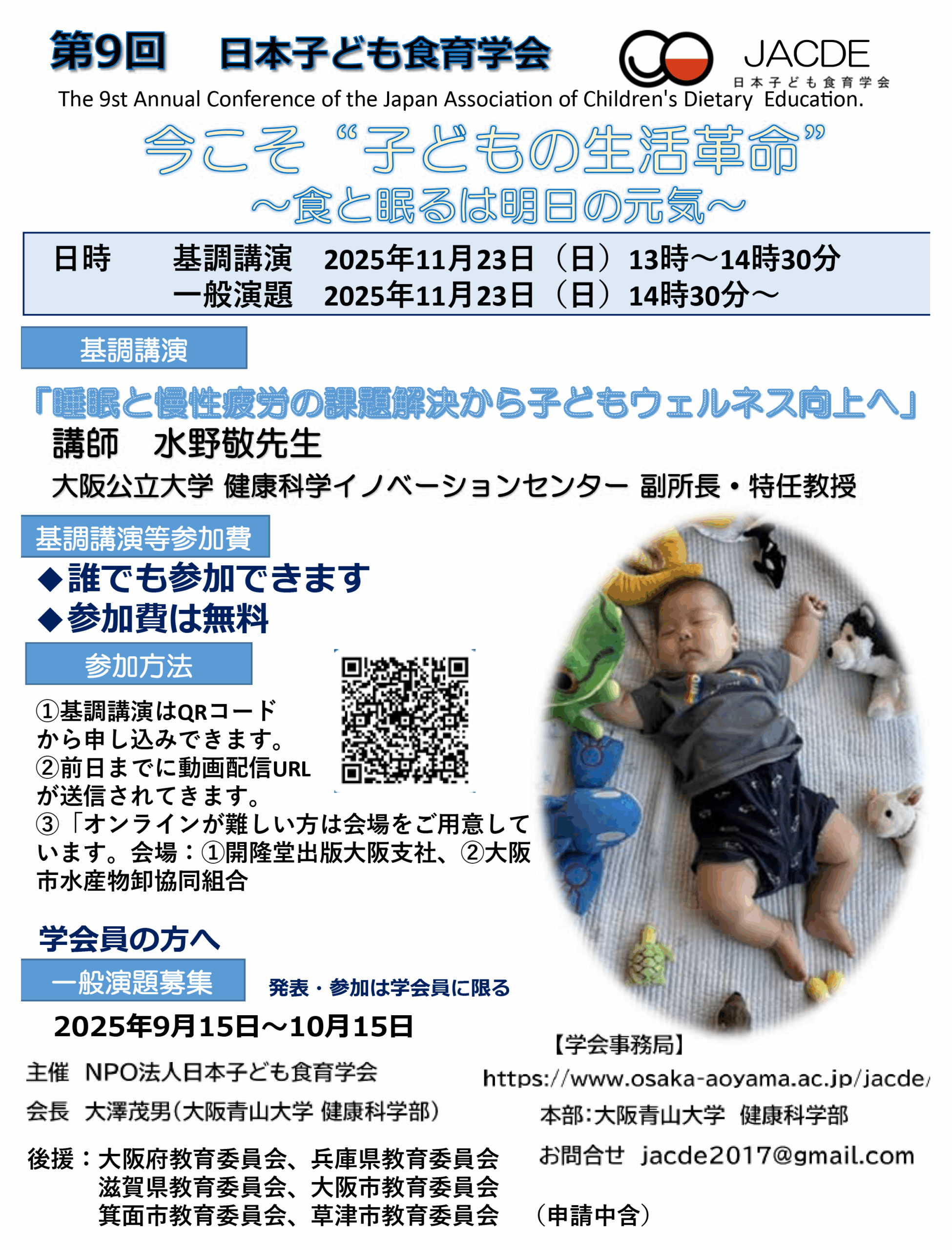 | 基調講演 | 睡眠と慢性疲労の課題解決から子どもウェルネス向上へ |