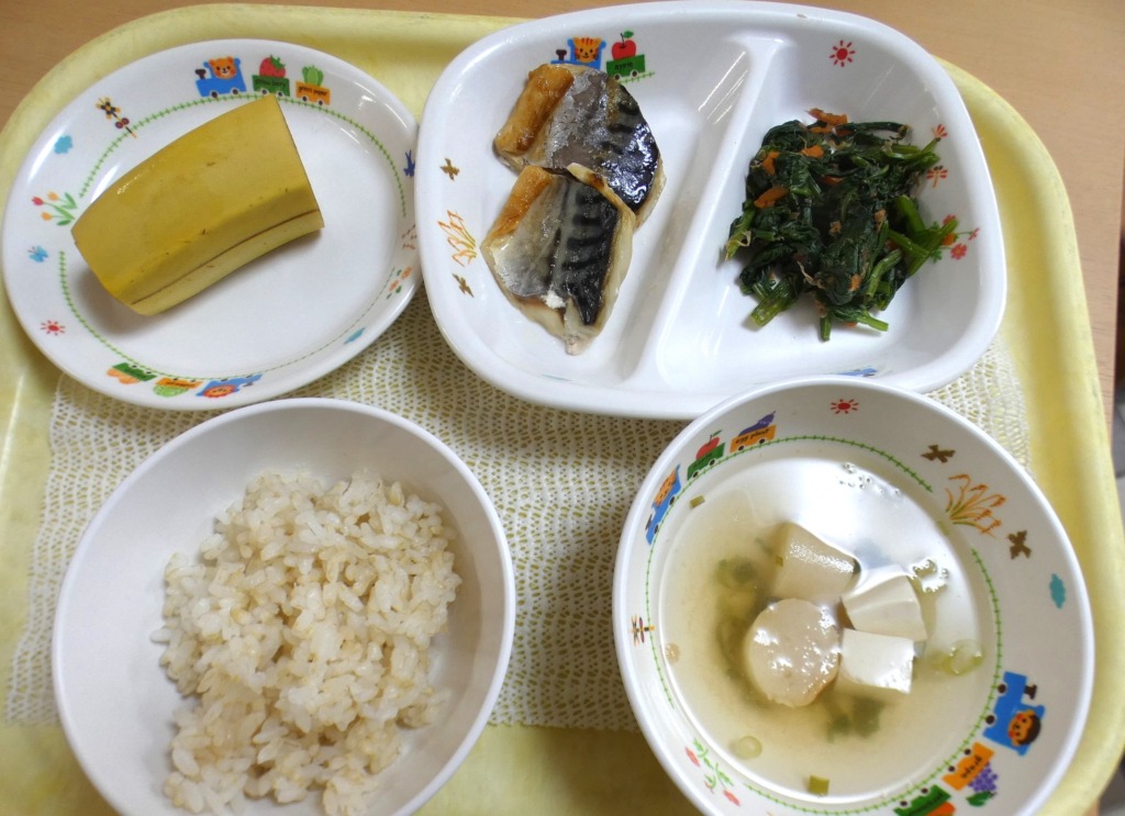 ・ご飯・鯖の塩焼き・ほうれん草のお浸し