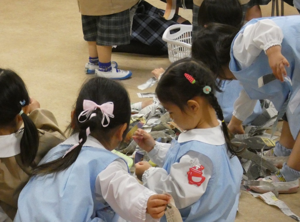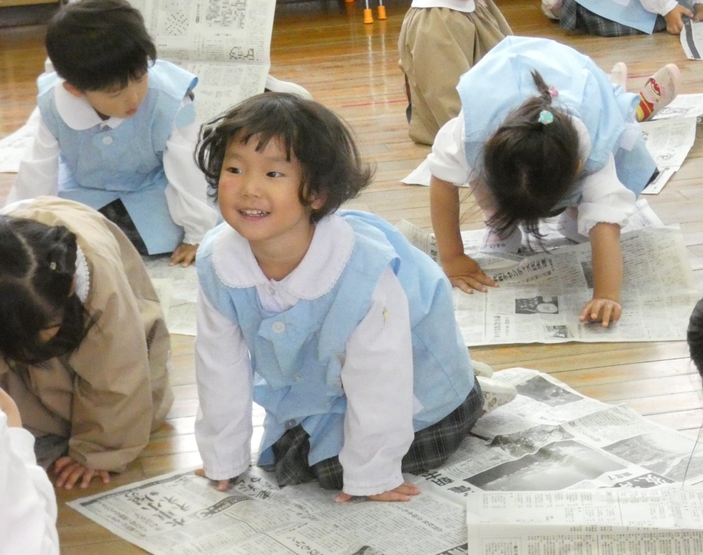 新聞紙あそびをしています。