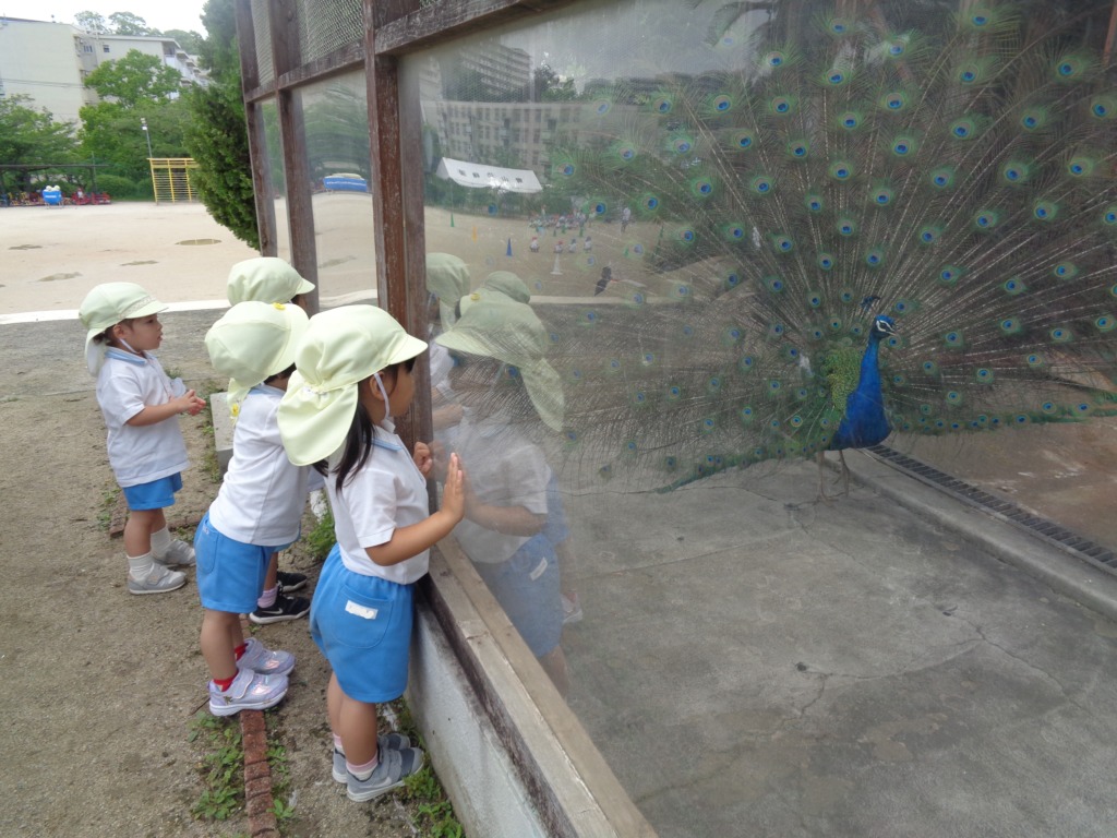 鳥小屋のクジャクを見ると「おおきいね!」とみんなびっくりしていました。