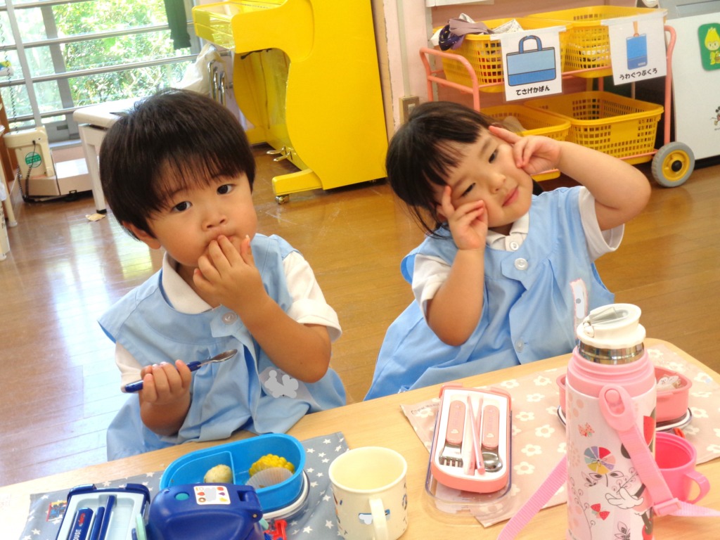 大好物を入れてくれてることを喜んだり、お弁当を見せあいっこしたりしていました。