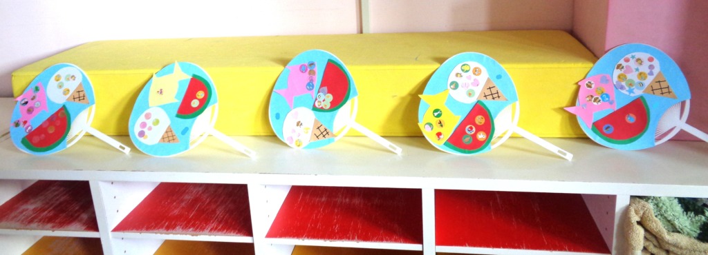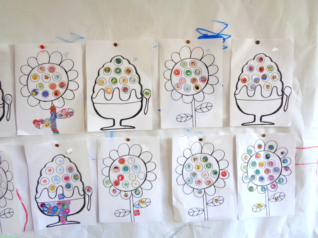 プリントにもたくさんシールを貼りました。たくさん貼って楽しかったのでお部屋の壁面に飾っています。