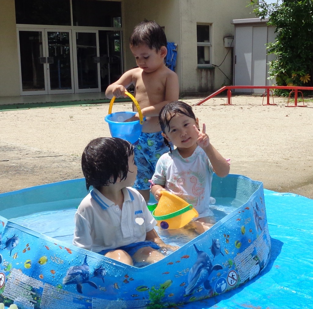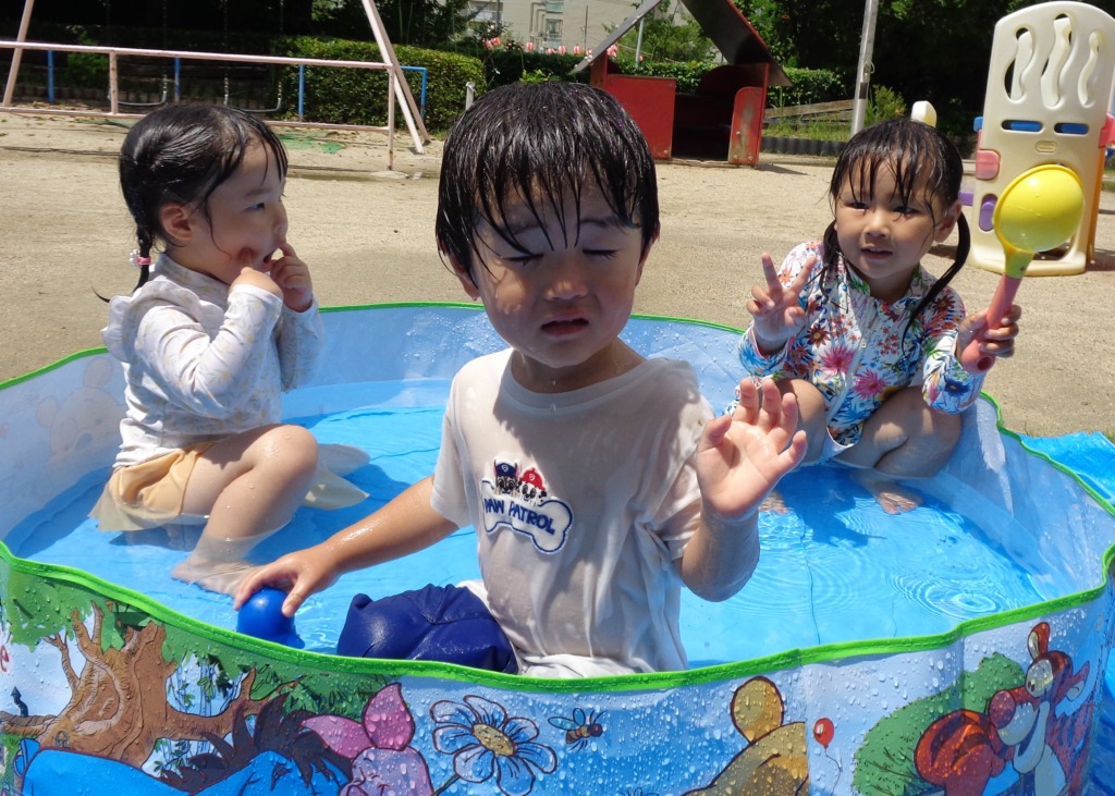 前回よりも、着替え方や準備の仕方の説明を落ち着いてみんなで聞けて慌てずに水遊びの用意ができました。