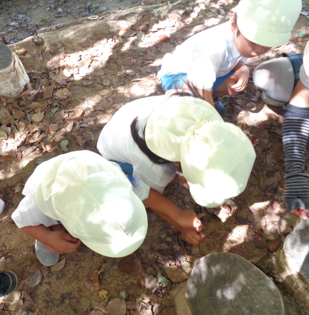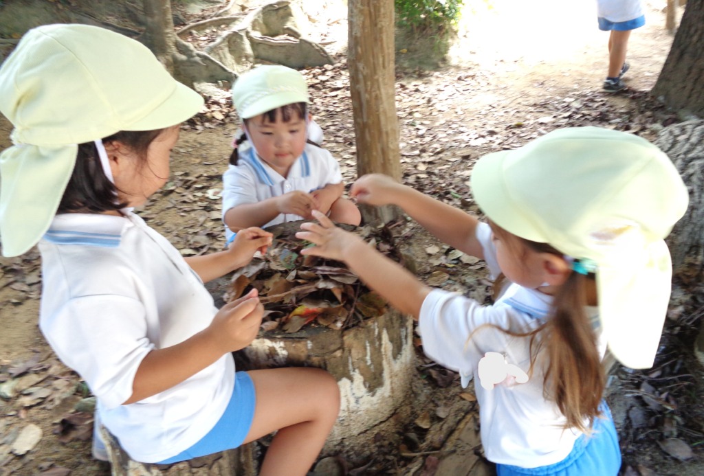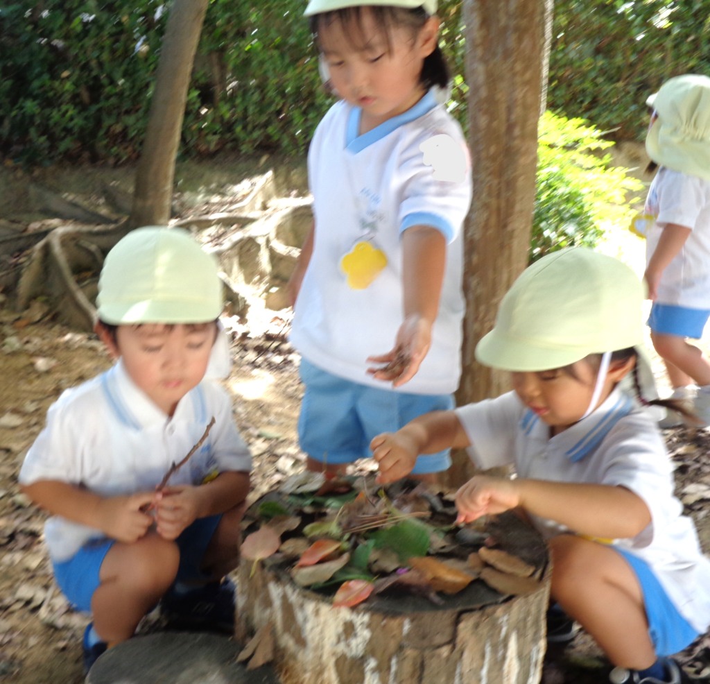 「あっちの葉っぱも使いたいから先生とって!」などの言葉がきこえてきました。