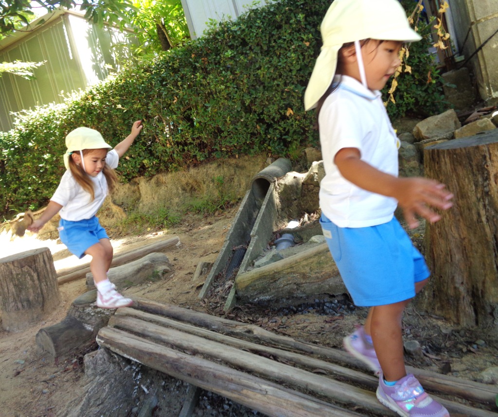 おっとっと 丸太橋をわたっています🏃♀️