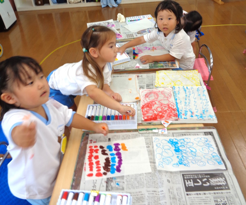 もっとしたい子は何枚も紙をもらいにきて、たくさん描いて楽しみました!