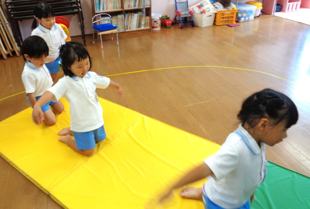 ソフト積み木の1本橋は、初めての子はすこし緊張していましたが