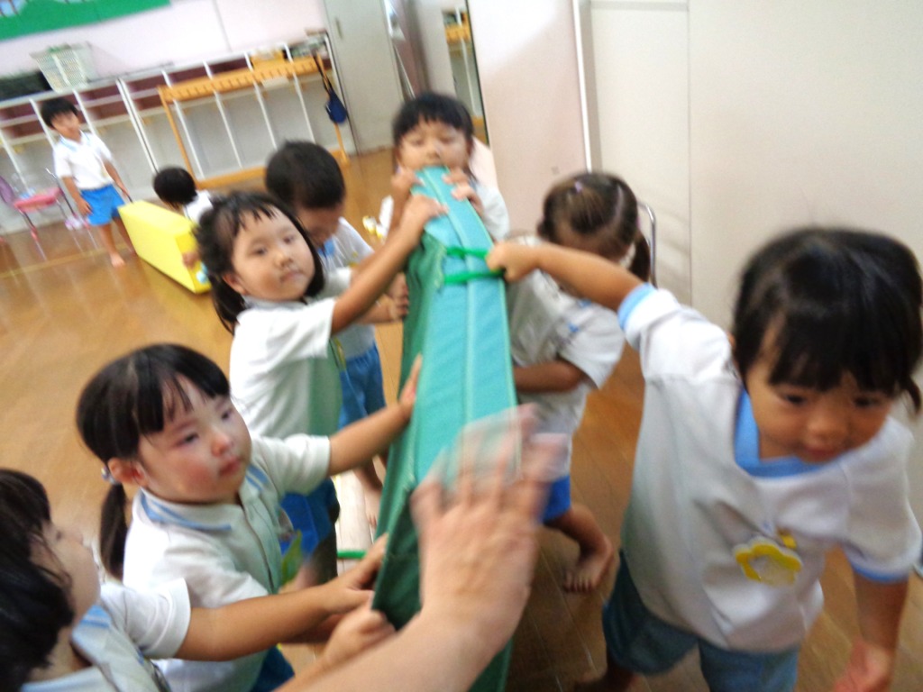 途中でトンネルや鉄橋、踏切を体で表現しながら楽しく遊びました。
