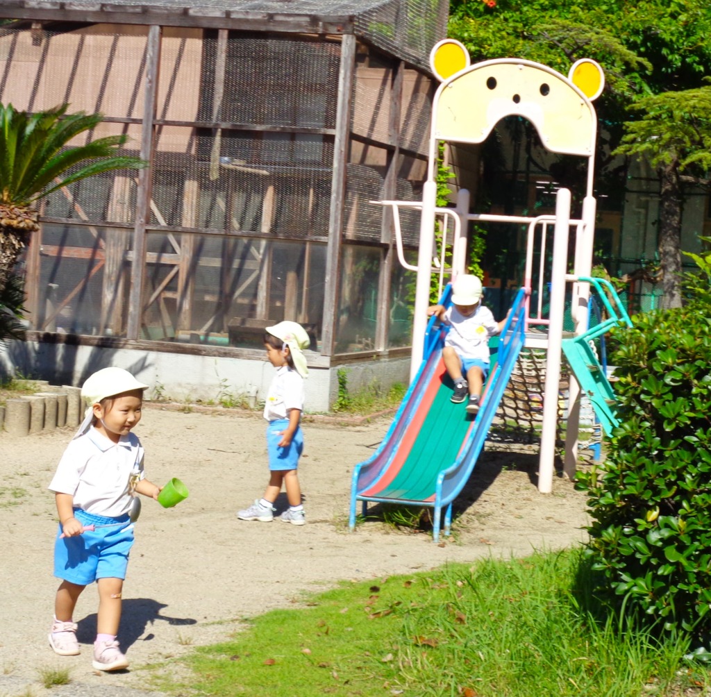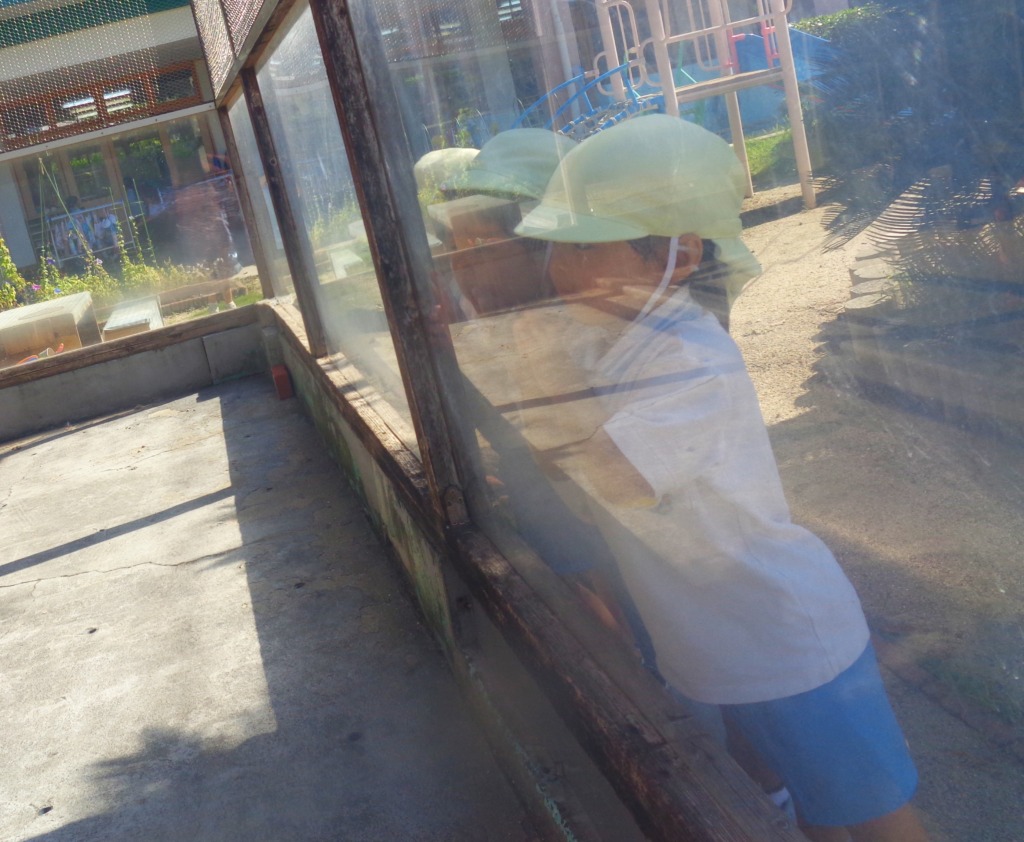 ほかの学年の友だちや運動場の景色に目を奪われて