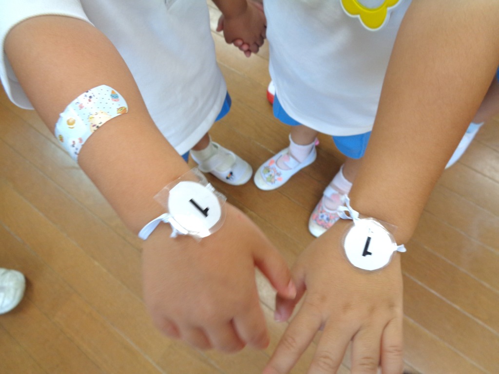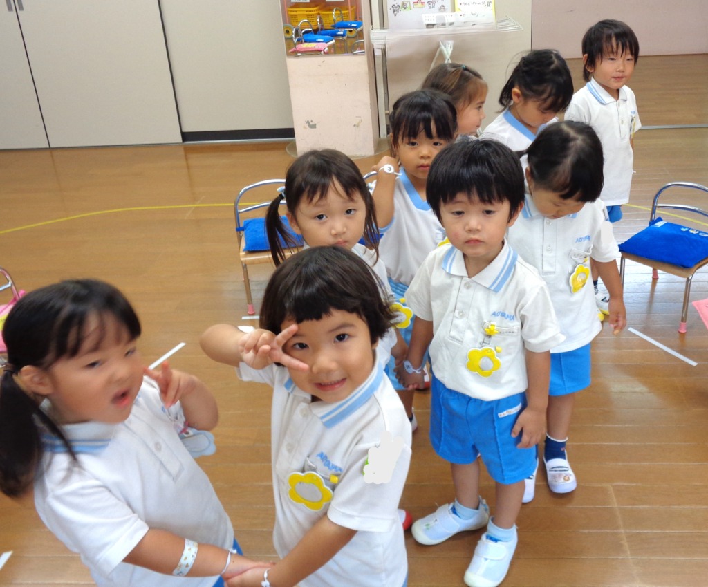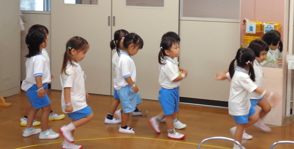 隣の子と手をつなぎ、並んで歩く練習もしました。