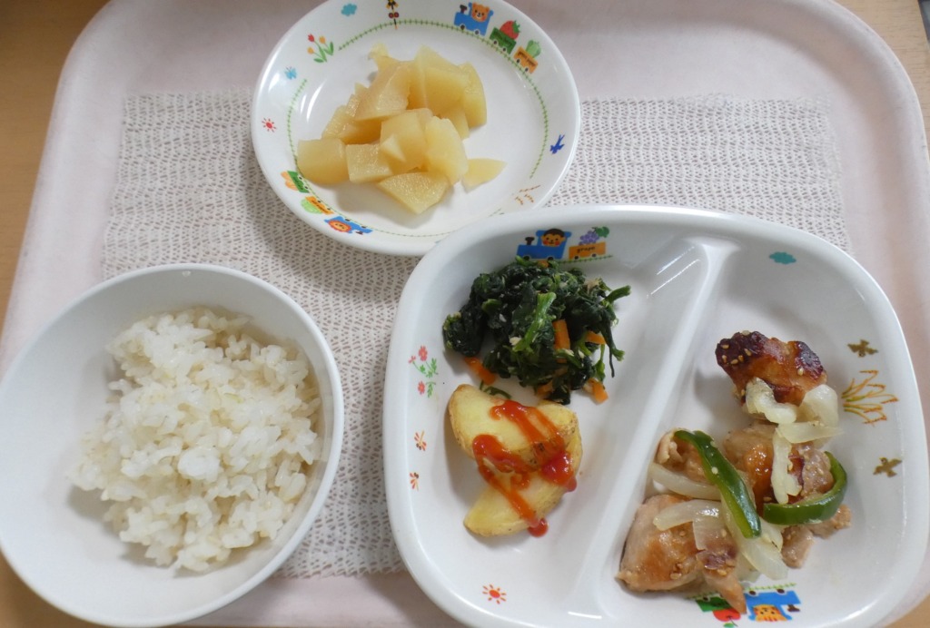 ・ご飯・中華風ローストチキン。ほうれん草のツナ和え