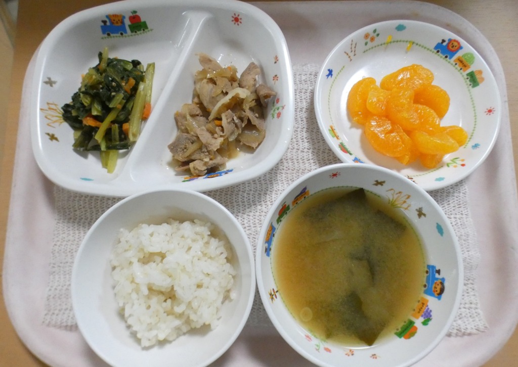 ・ご飯・豚の生姜炒め・小松菜のごまだれ和え
