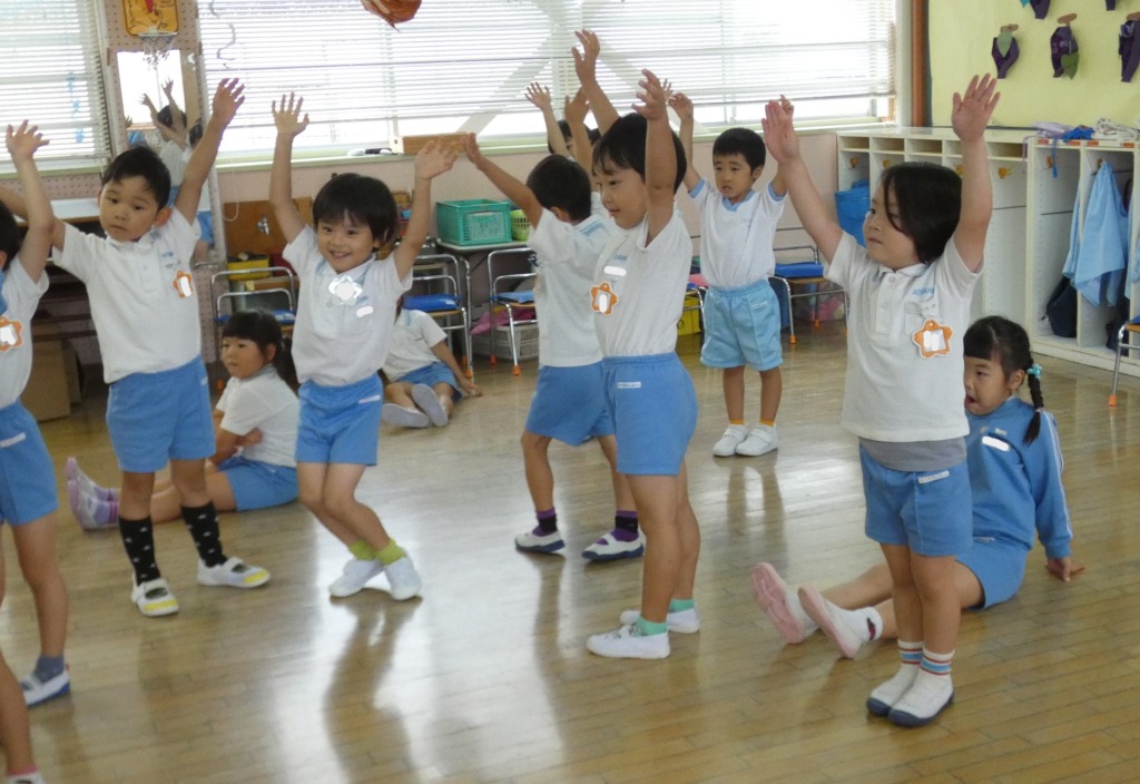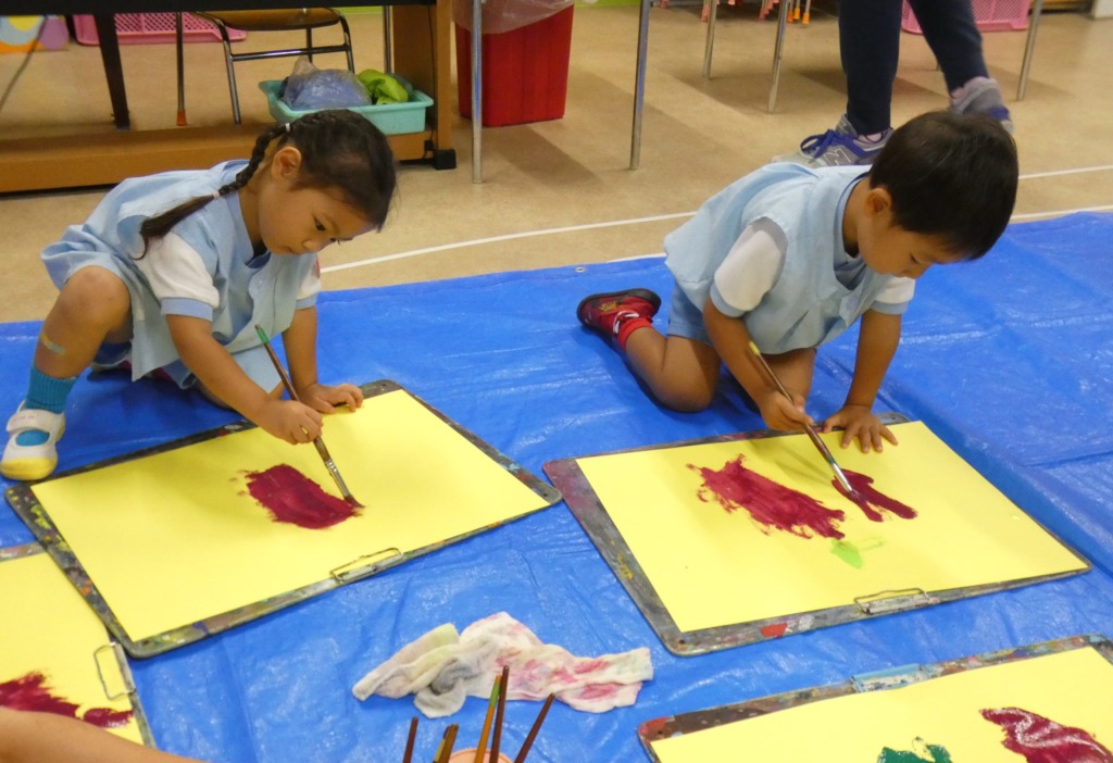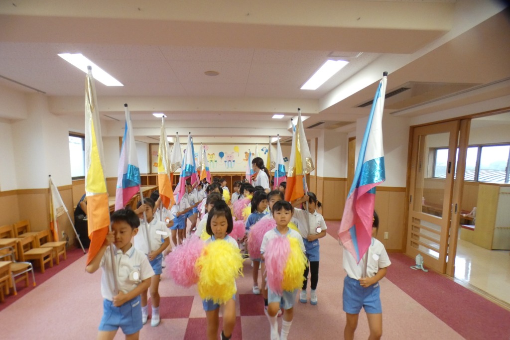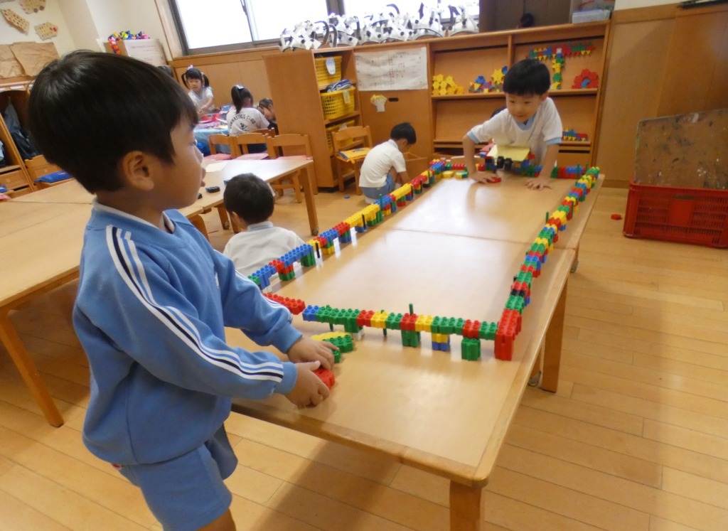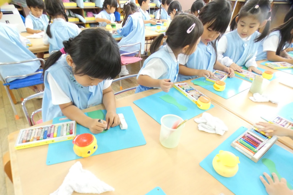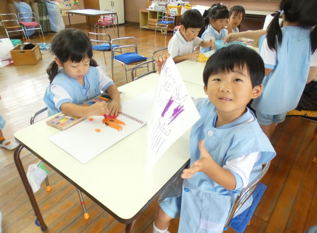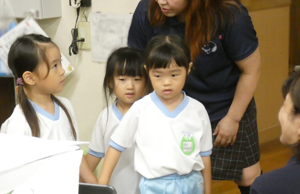 朝からの雨でレインコート姿のお友だちがたくさんいました。