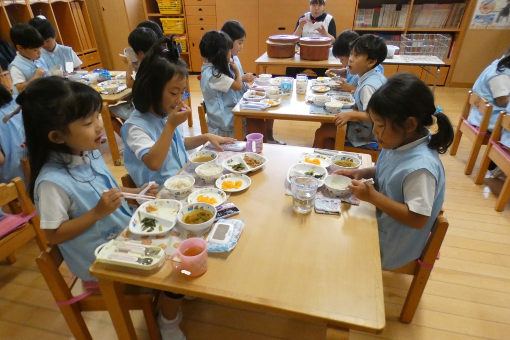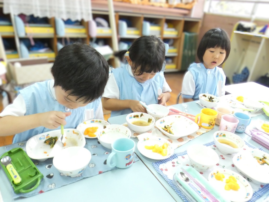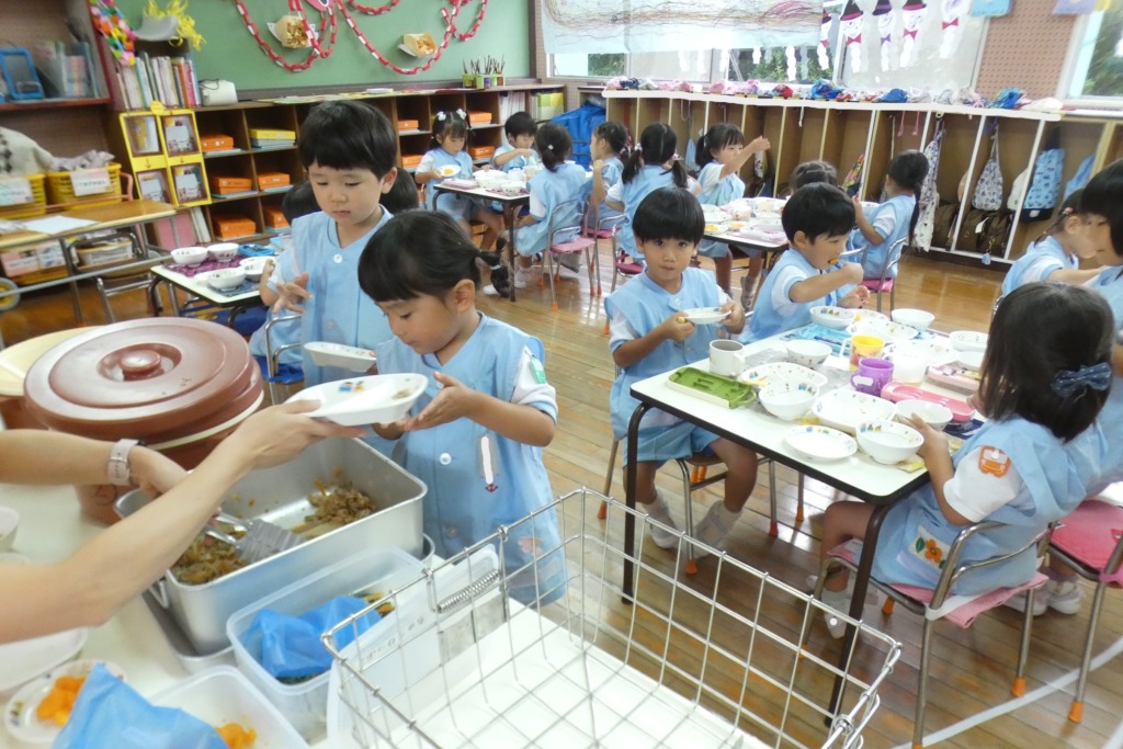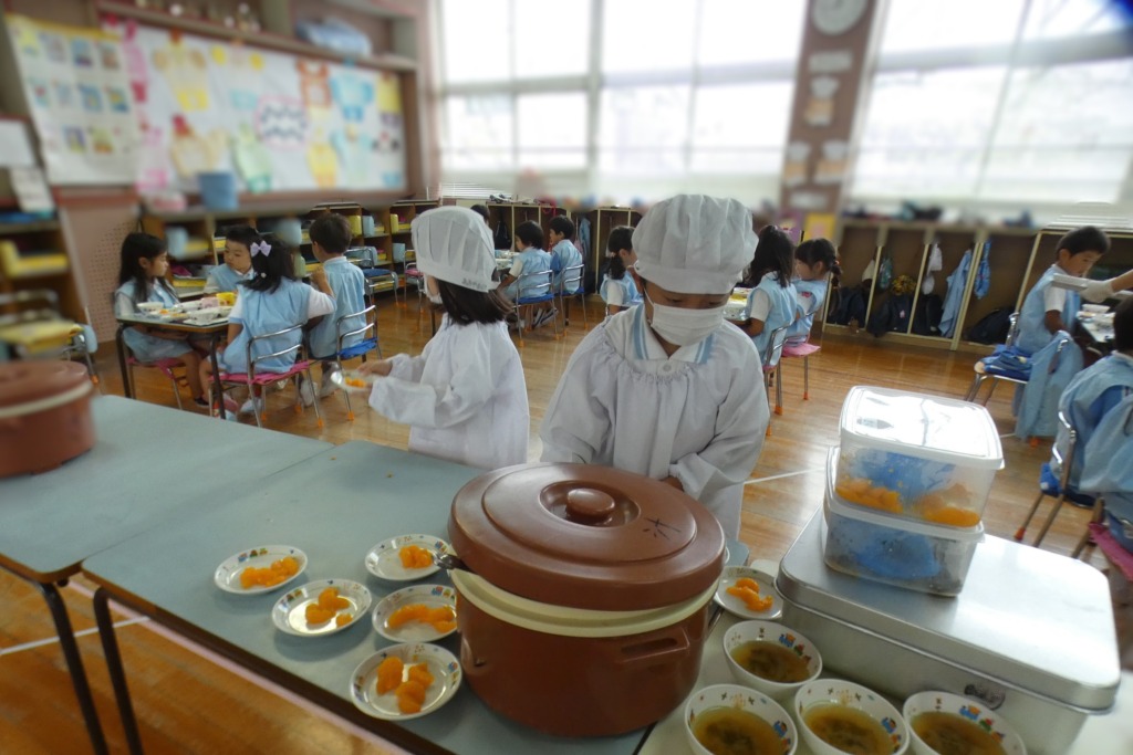 給食当番も配膳や挨拶などしっかり頑張っています。