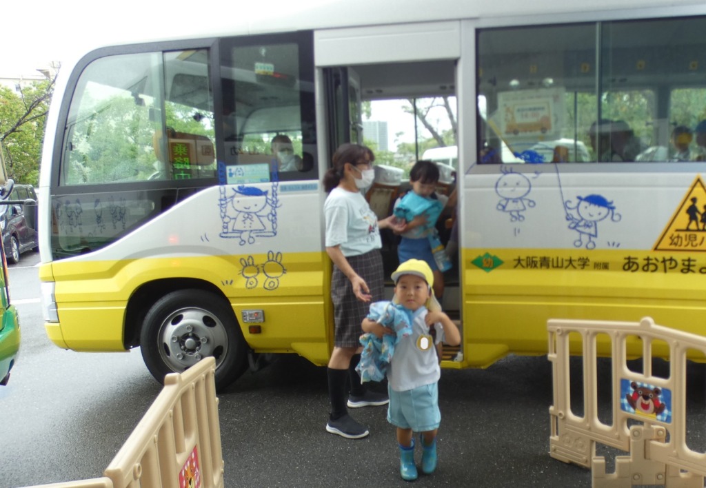 バスの到着です。雨が小降りになっていました。