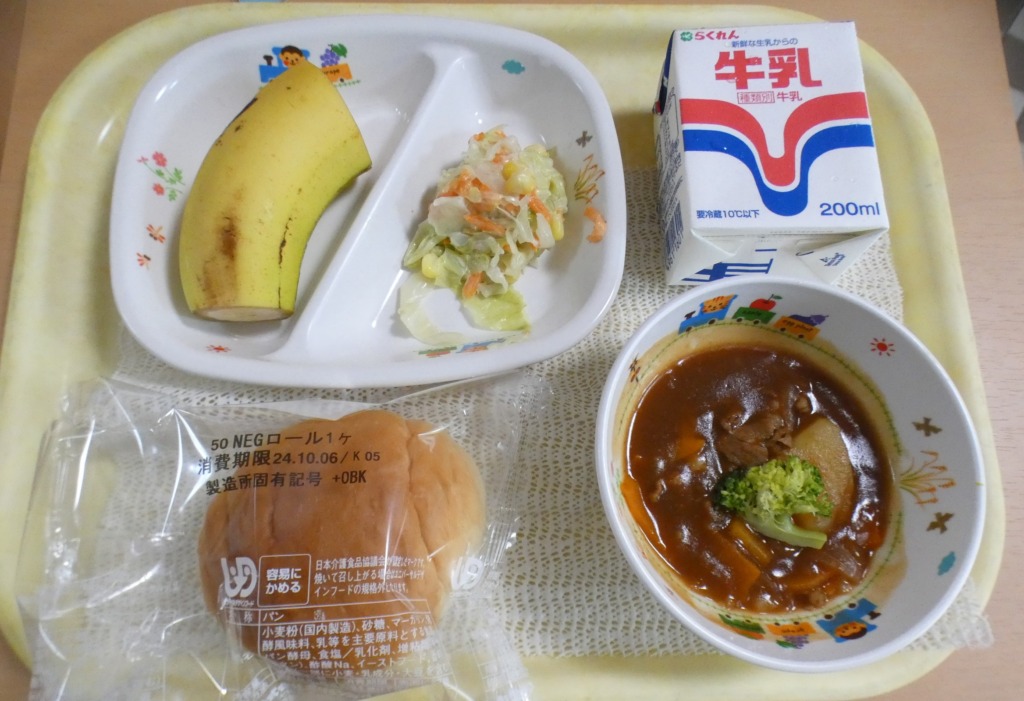 ・牛乳・ロールパン・ビーフシチュー