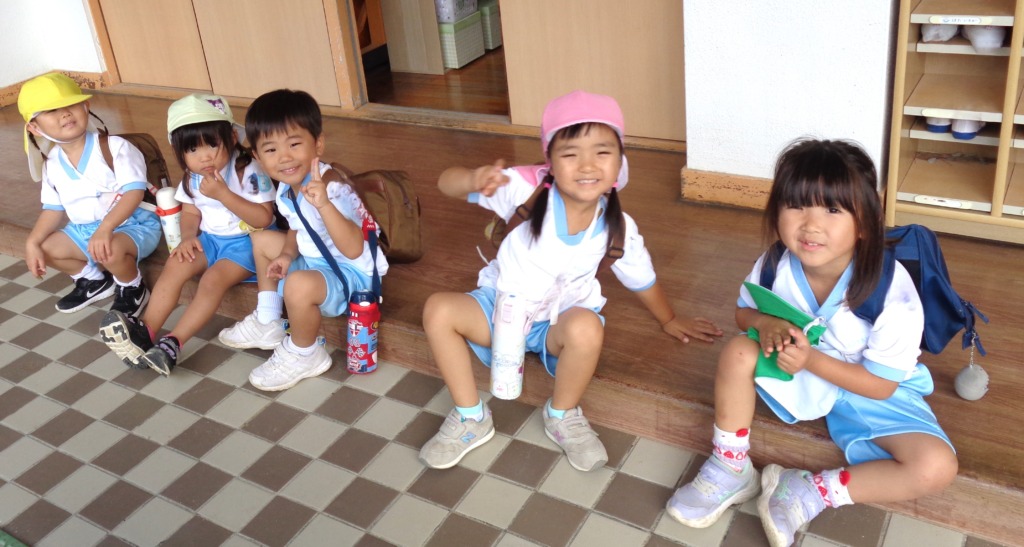 遅バス(2便目)のお友達は、バスごとに集まってから