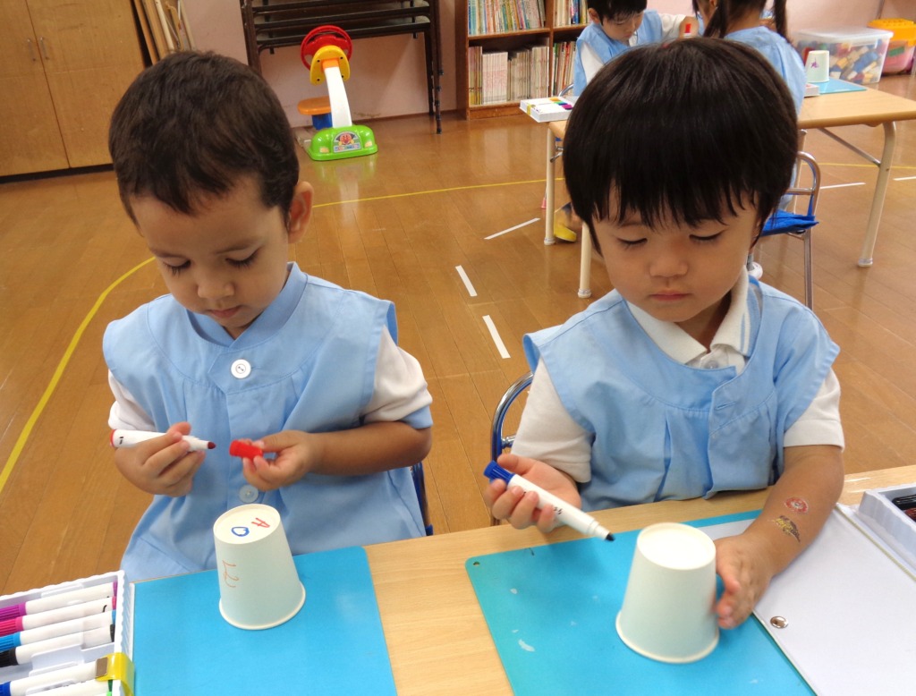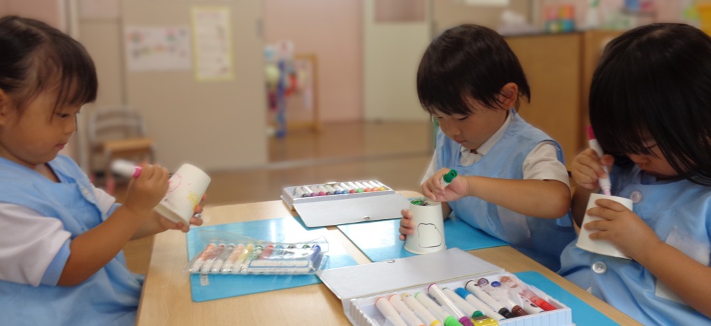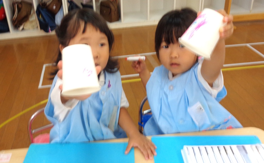 自分の紙コップに描くこと・洋服や手にお絵描きはしないこと