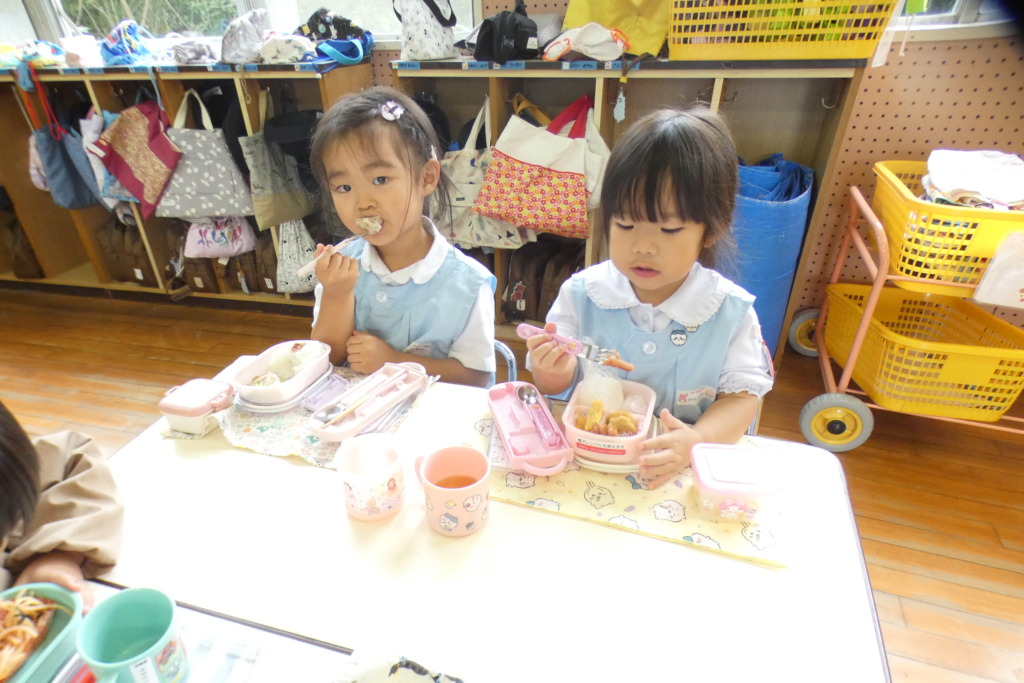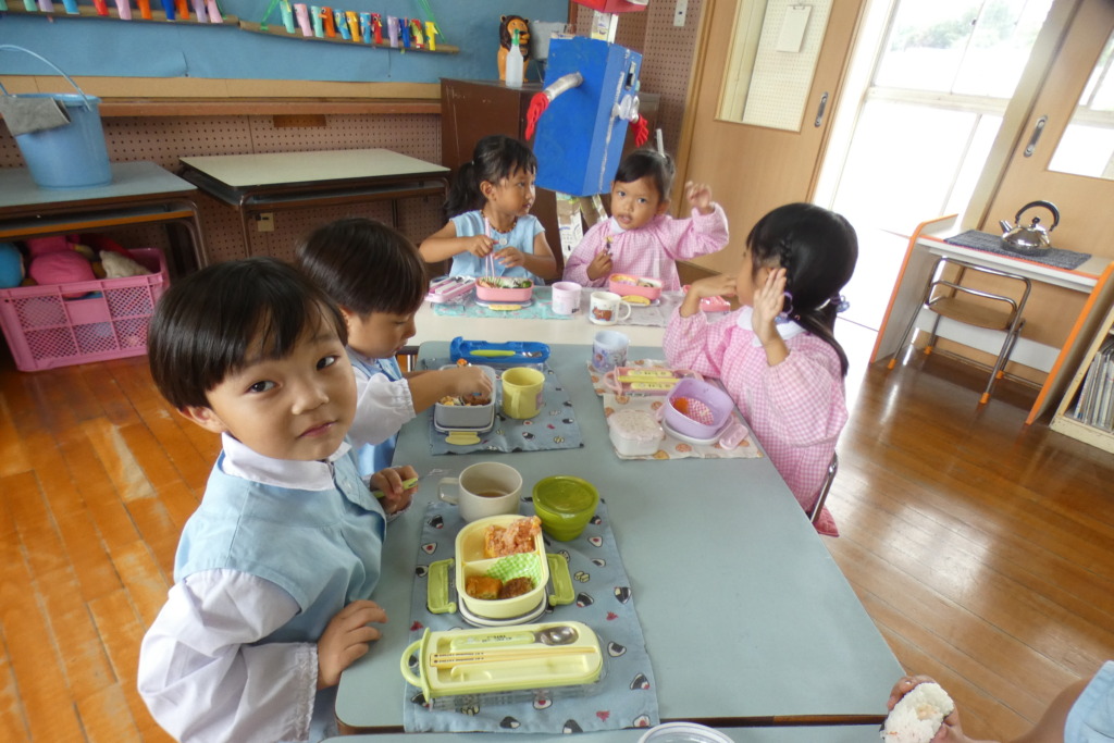 お弁当に何が入っているのかを教えてくれる子どもたち。