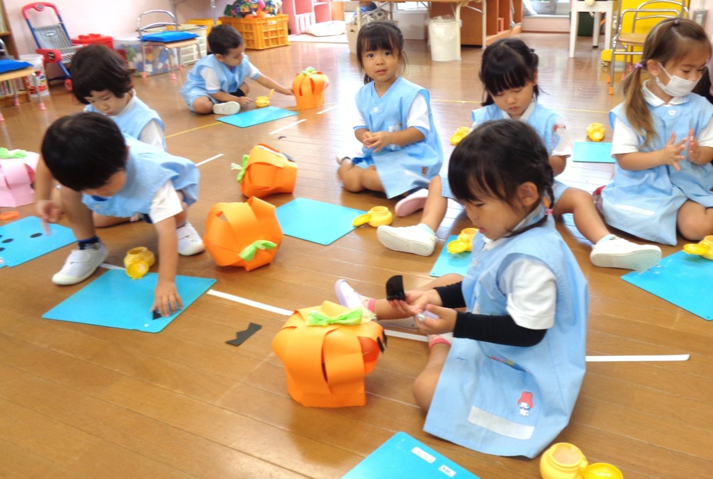 これだけで かぼちゃに見えてきて 子どもたちはとても嬉しそうです。