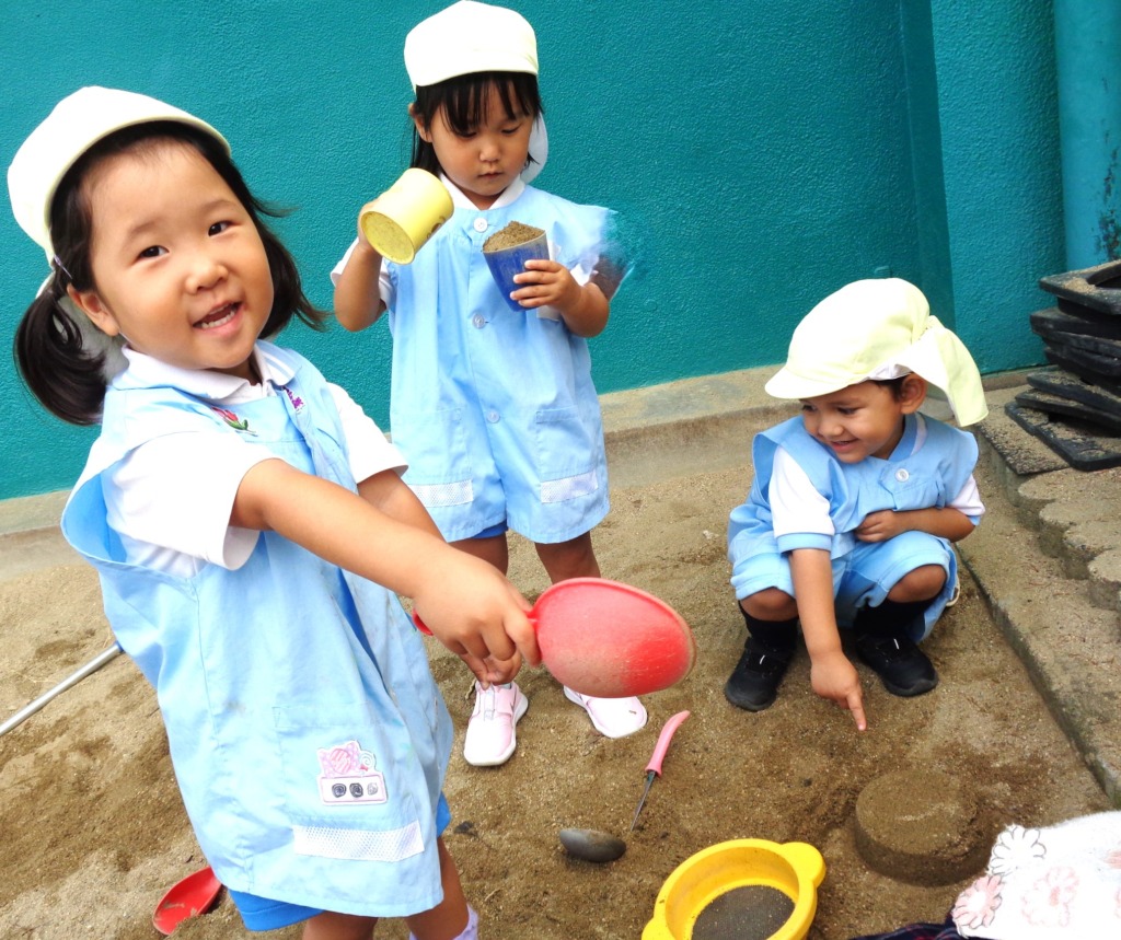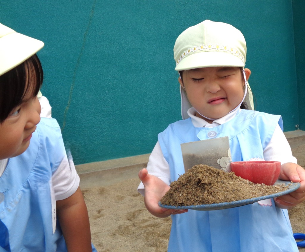 今日は砂場あそびが人気で、最近できるようになった