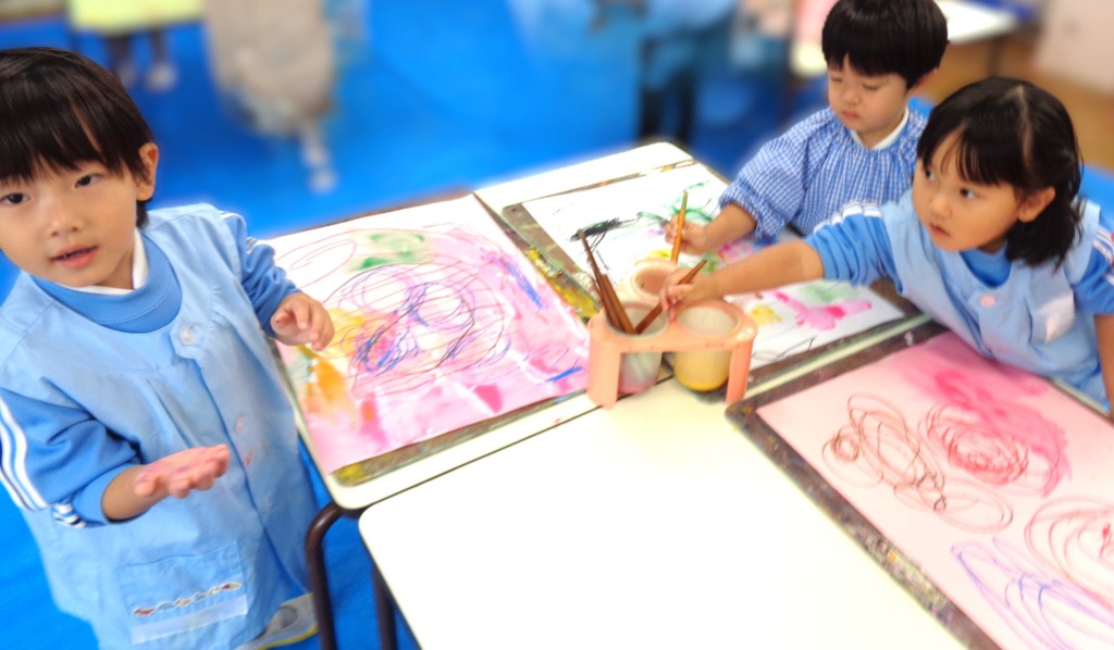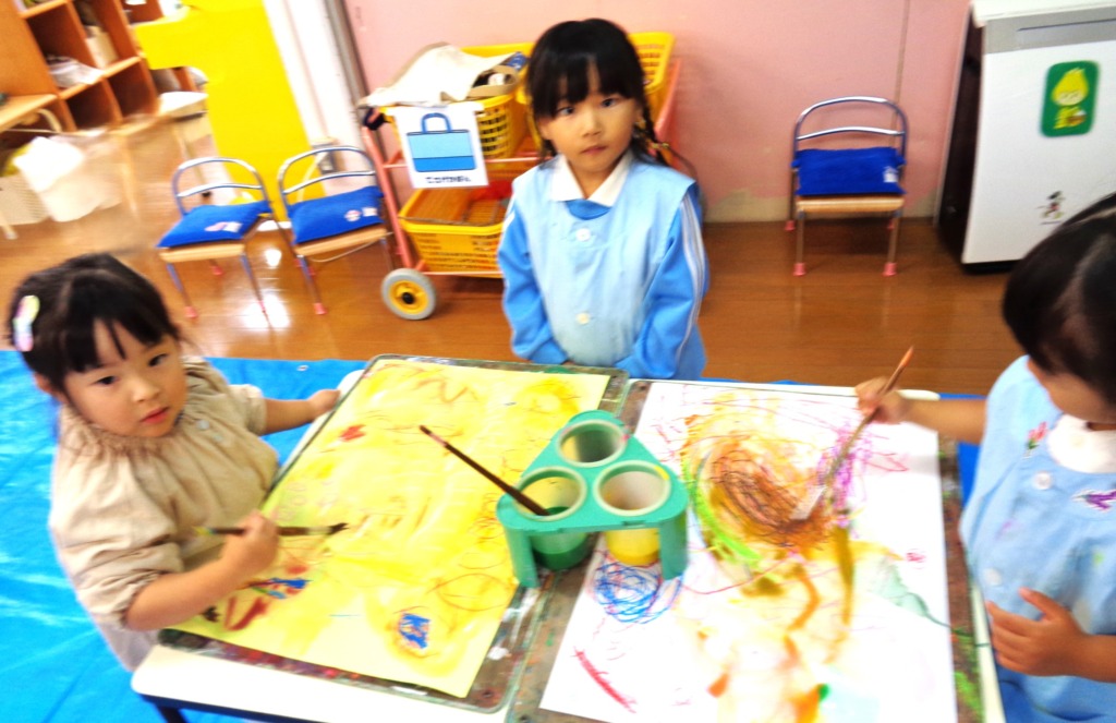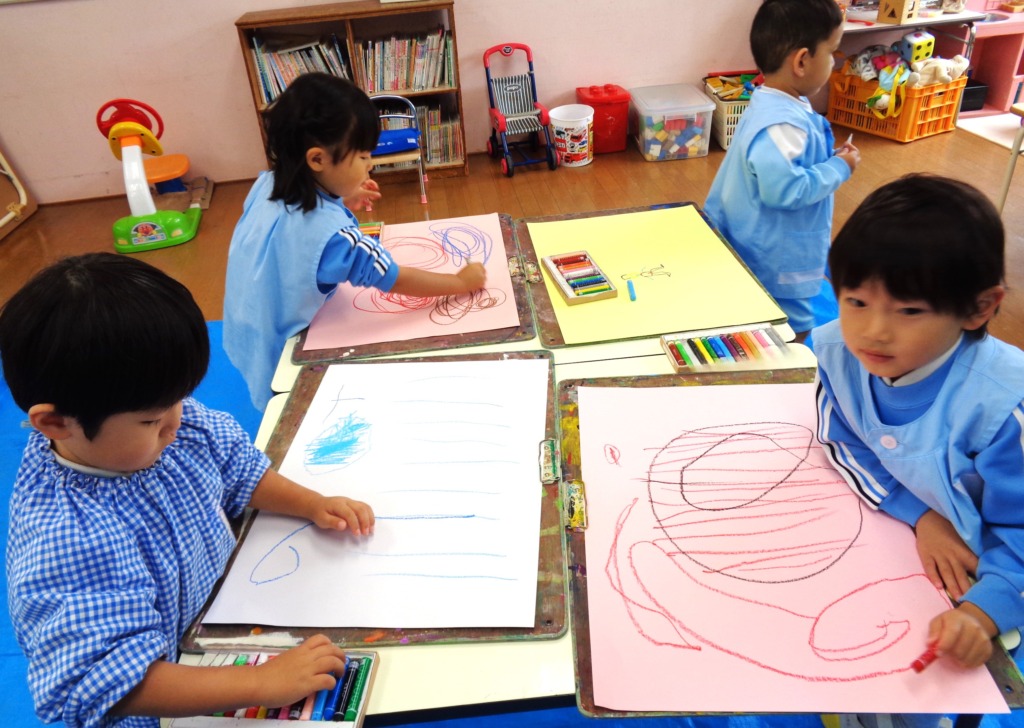何色を使おうか、次は何を描こうかと、お友だちを見ながら