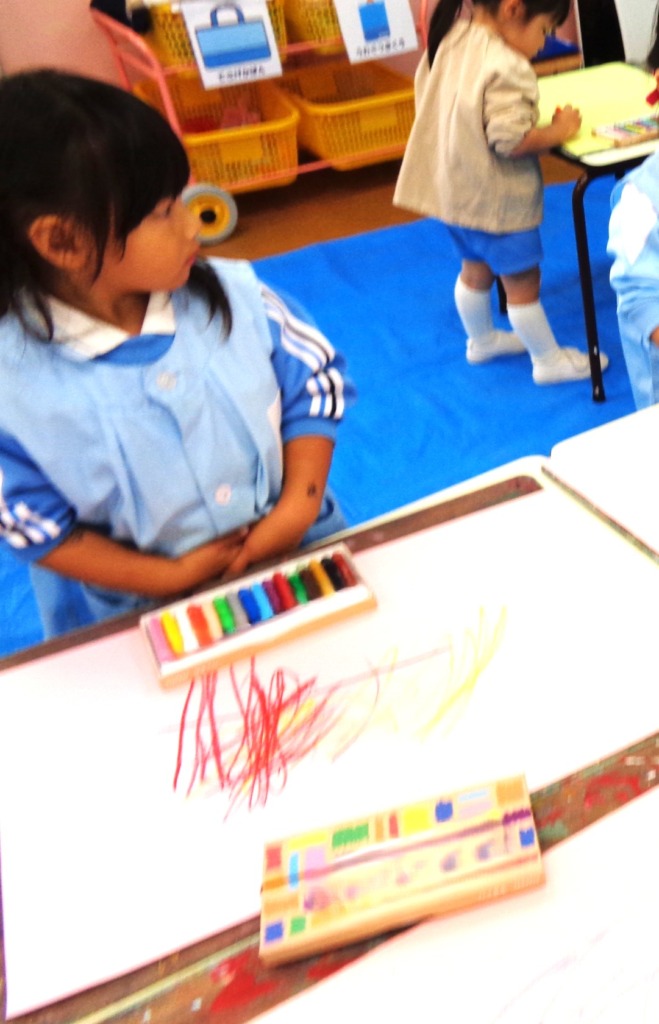 クレパスの全色を使おうとがんばって描きこんでいる子もいました!