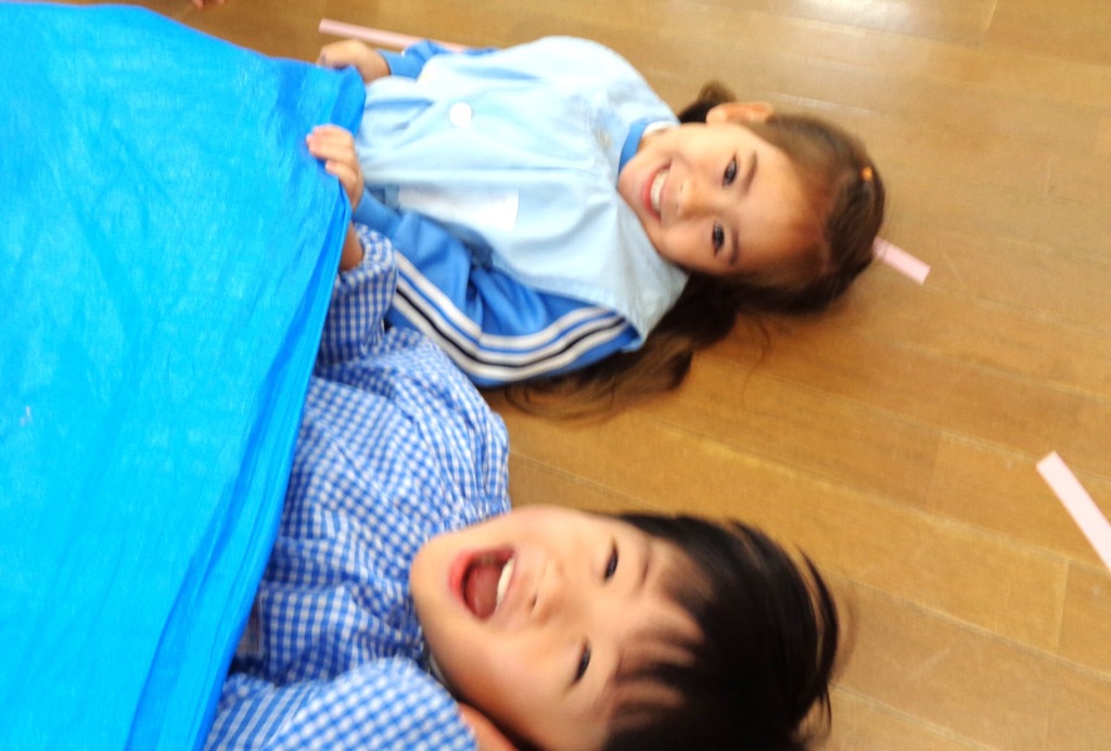 シートをひろげたり、たたんだりするのが大好きなつぼみさんたちです。